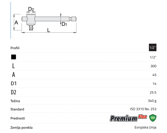 Unior 190.3/1 T-ručica prihvat 1/2"